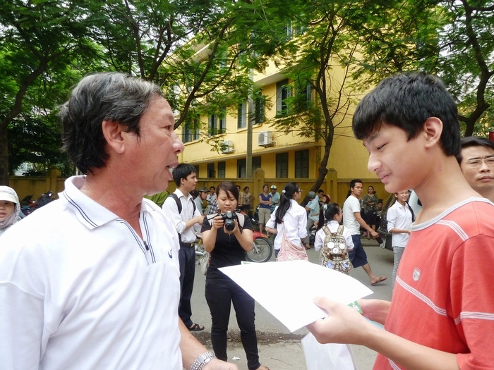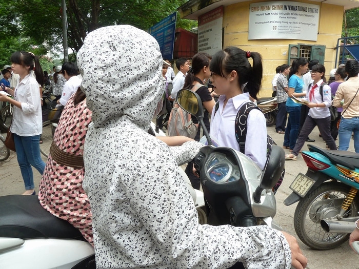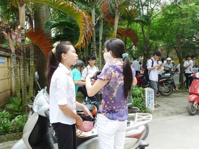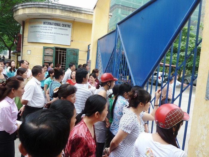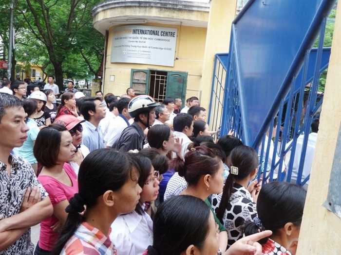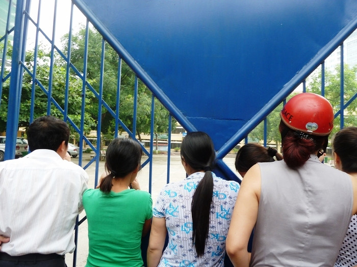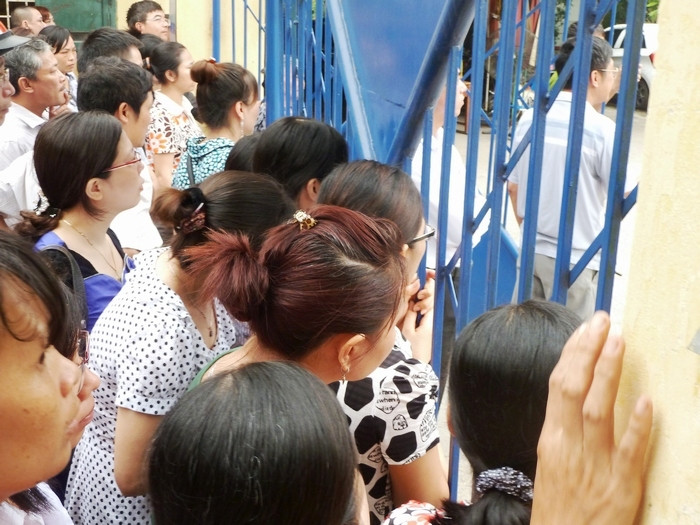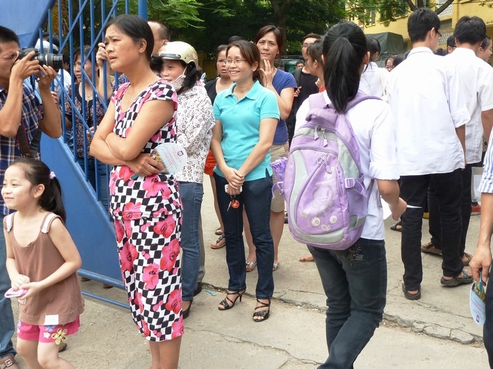 | Hình ảnh được PV ghi vào buổi thi vào lớp 10 vào ngày 21/06: Con vào thi, nhưng những ông bố bà mẹ ở ngoài cổng đứng ngồi không yên đợi chờ, ngóng xem con có quên gì không, đã vào phòng thi chưa. |
