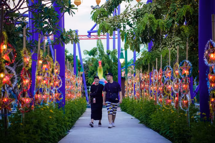 Mặc dù còn hơn nửa tháng nữa mới đến Trung thu, nhưng không khí tại phố lồng đèn thuộc tổ hợp vui chơi giải trí Da Nang Downtown (Công viên Châu Á cũ) đã trở nên nhộn nhịp và sôi động ngay từ dịp nghỉ lễ 2/9. Những tiểu cảnh lồng đèn đầy sắc màu và các không gian check-in được trang trí theo chủ đề Trung thu tại đây đang thu hút nhiều bạn trẻ đến tham quan và chụp ảnh.