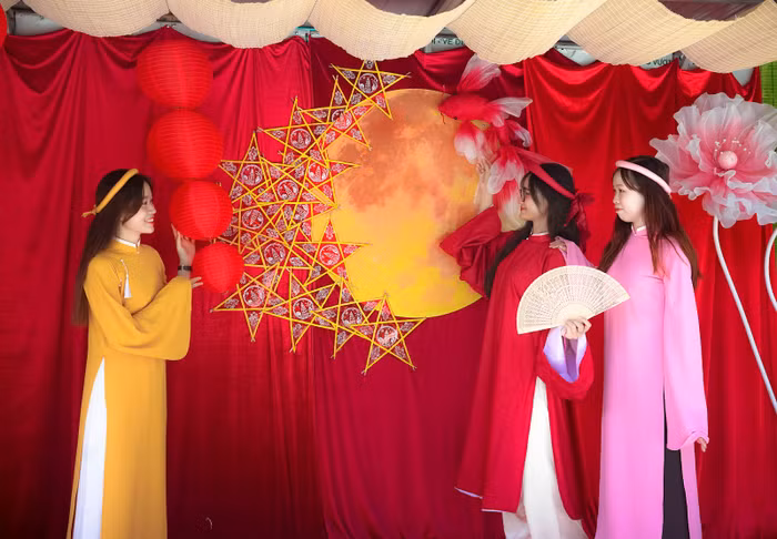 Ngoài check-in cùng các tiểu cảnh bắt mắt, du khách còn được trải nghiệm hoạt động “xin chữ” ông đồ tại đây. Nhiều bạn trẻ còn rủ nhau đầu tư trang phục chỉn chu như áo dài truyền thống, áo ngũ thân, sườn xám… để có những bức ảnh Trung thu chất lượng.