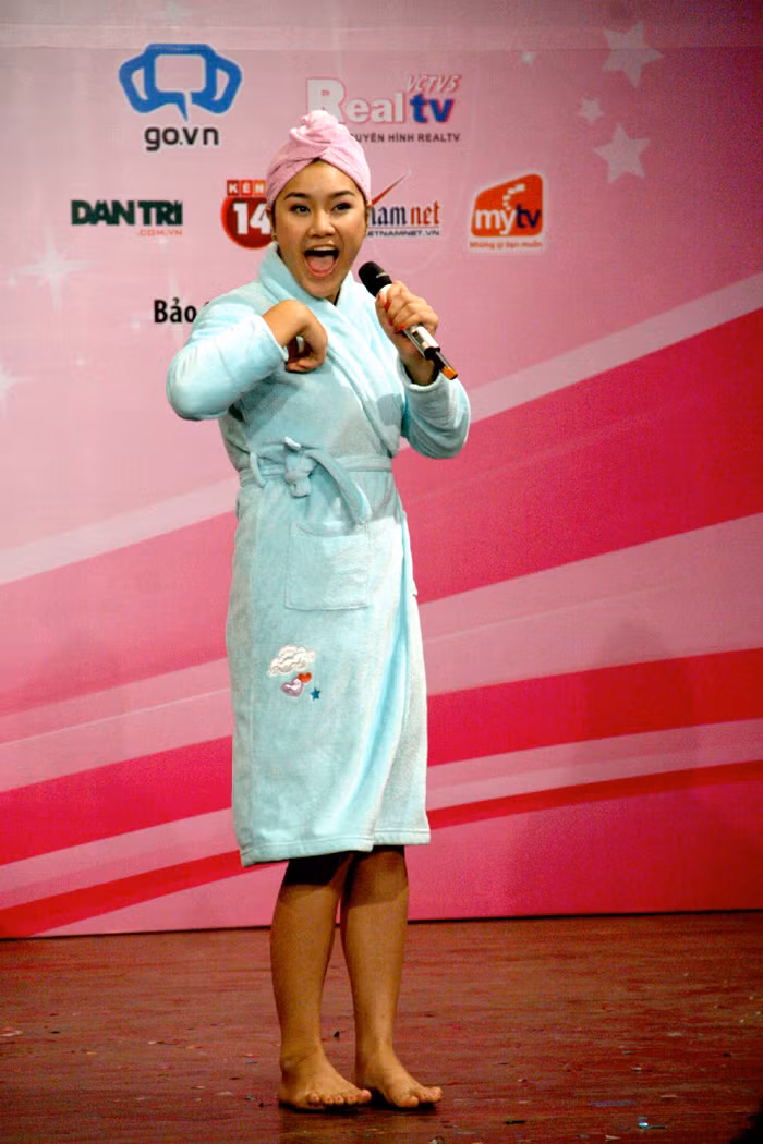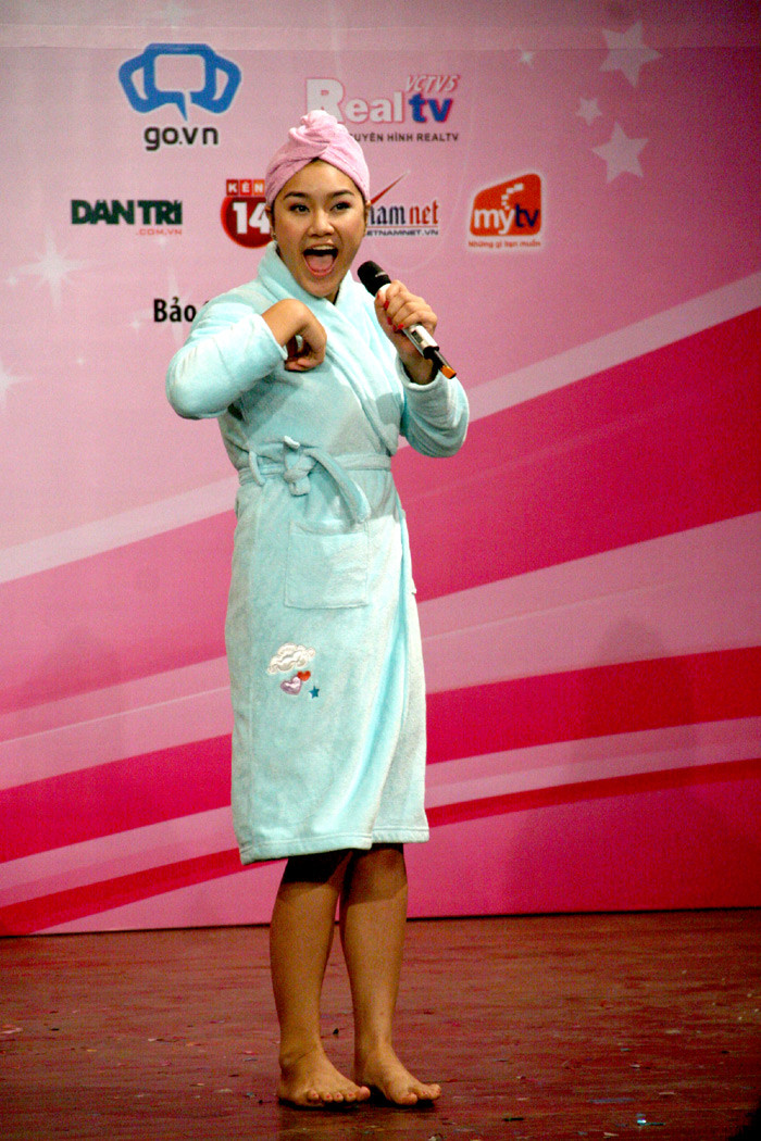 | Thí sinh Đào Mỹ Linh, số báo danh 1571 có phong thái, thậm chí giọng nói khá tương đồng với ca sỹ Hoàng Thùy Linh. |