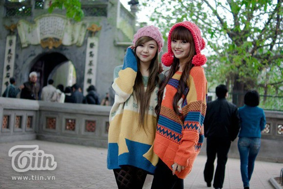 | Trong bộ đồ len nhiều màu sắc, trông hai cô gái miss teen thật rực rỡ và tươi tắn. |