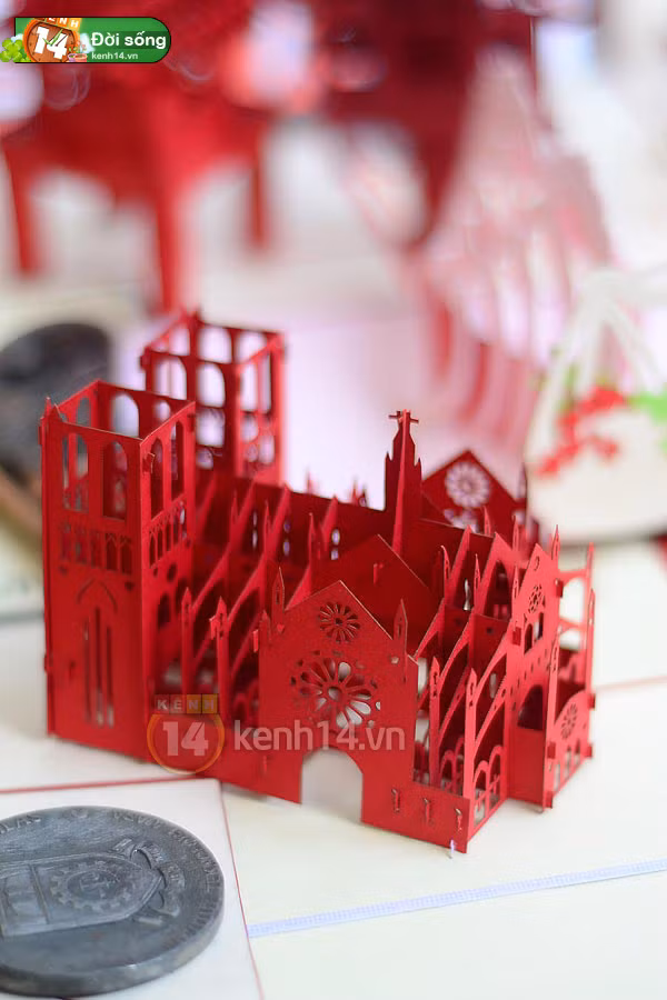| Còn các mẫu thiệp cầu kì như kiến trúc, danh lam thắng cảnh thì chúng sẽ được khắc laze để đảm bảo độ chính xác và tỉ lệ của vật được dựng lên. |