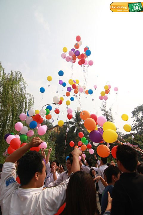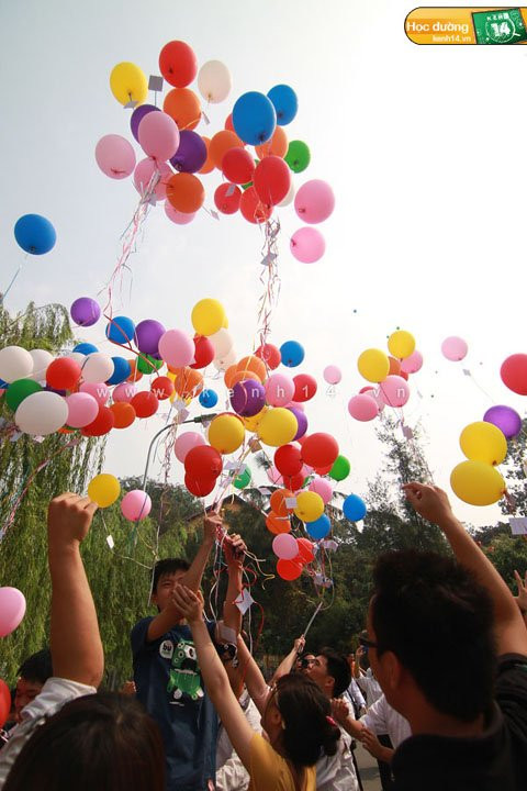 Gần 300 quả bóng bay cùng các thông điệp may mắn được thả lên trời trong sự kiện Message Balloon của teen Phan Đình Phùng.