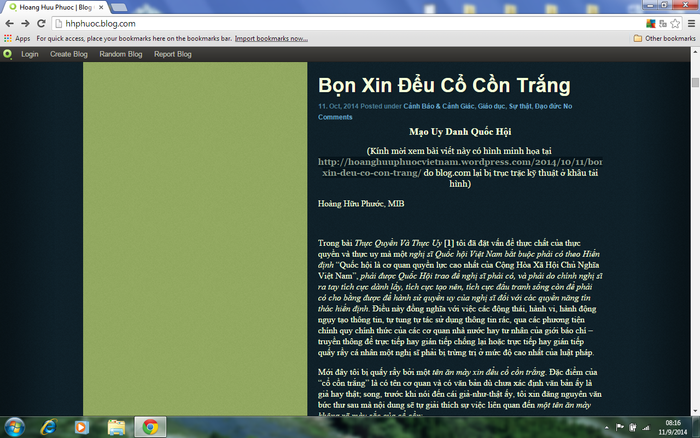 Như ông Phước viết trên blog của mình, đó là blog giao lưu của đại biểu quốc hội khóa XIII với cử tri toàn quốc. Để tránh lặp lại dài dòng, dưới đây xin dùng cụm từ viết tắt “MIB HHP” thay cho “Thạc sĩ kinh doanh quốc tế Hoàng Hữu Phước”.