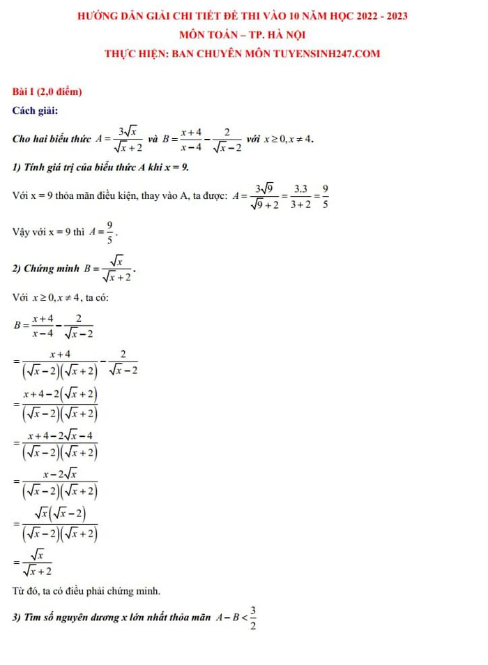 | Đề thi môn Toán vào lớp 10 của Hà Nội năm 2022. (Ảnh: Kim Minh Châu) |