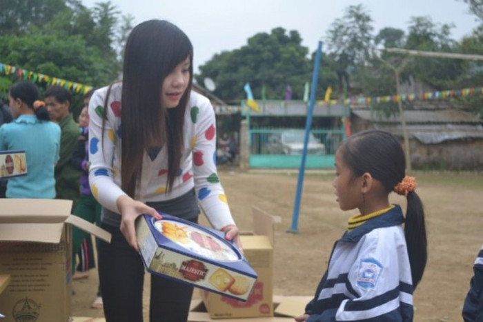 Trực tiếp sắp xếp bánh kẹo, đóng gói, trao tận tay cho bà con, Khuê hạnh phúc khi được đón nhận những lời cám ơn, những cái bắt tay siết chặt, ánh mắt, và nụ cười. Đó là những giây phút thiêng liêng và có lẽ là động lực lớn nhất cho mình để vượt qua hành trình đầy gian khó gần 2000km.