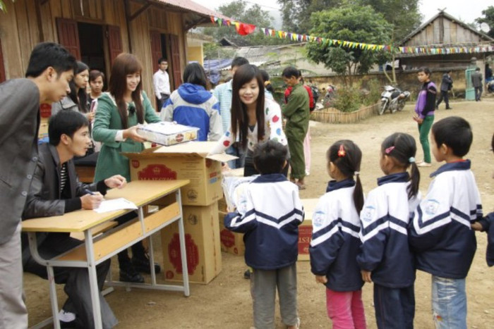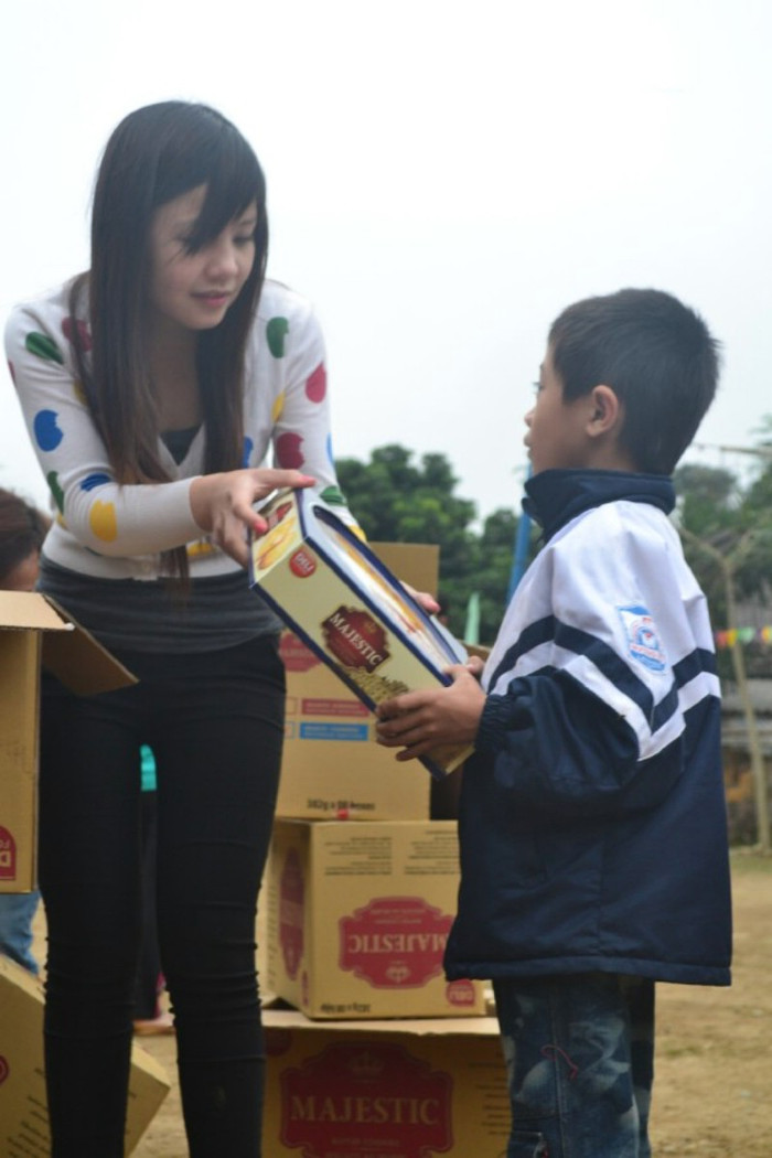 Minh Khuê: Khi tận tay phát kẹo cho các bé tại Trường Tiểu học Mường Mô, các bé nhao nhao ra xếp hàng xin chị... (cười mãn nguyện) Mình nghĩ khi làm được việc như vậy, ai cũng sẽ giống nhau thôi, sẽ yêu thích công việc làm từ thiện, yêu thích những đứa trẻ ngoan ngoãn đó.