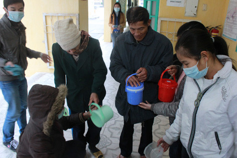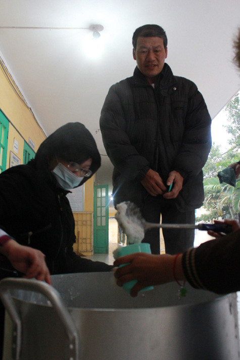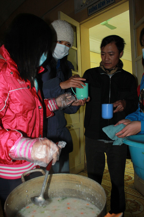 | Nhiều bệnh nhân, người nhà ra tận nơi xin cháo tình thương. |