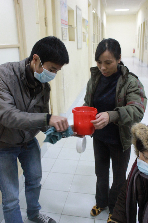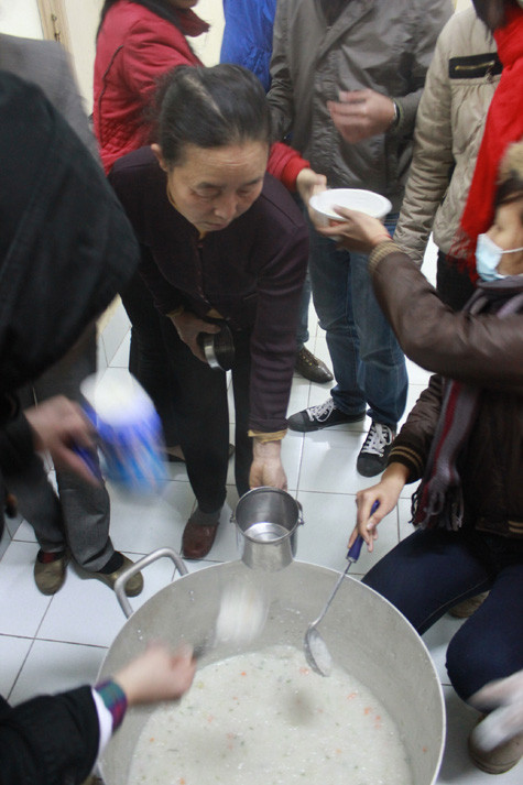 | 12 & 13 Các thành viên đưa cháo đến từng bệnh nhân. |