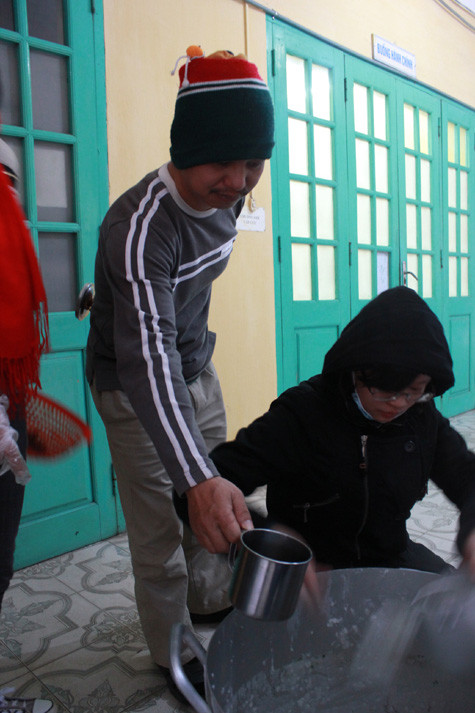 | Các thành viên trong nhóm vẫn ngồi bên nồi cháo tình thương. |