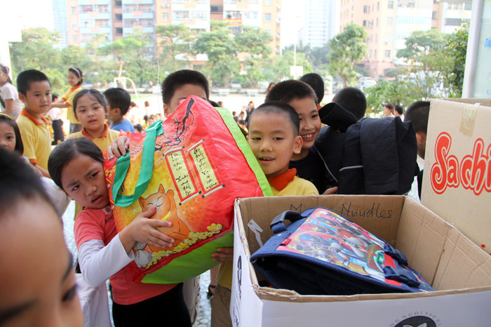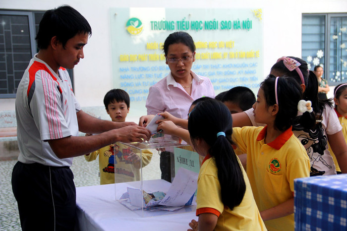 Hình ảnh những nhà hảo tâm nhí ở trường Tiểu học Ngôi Sao HN