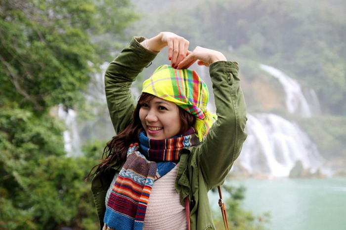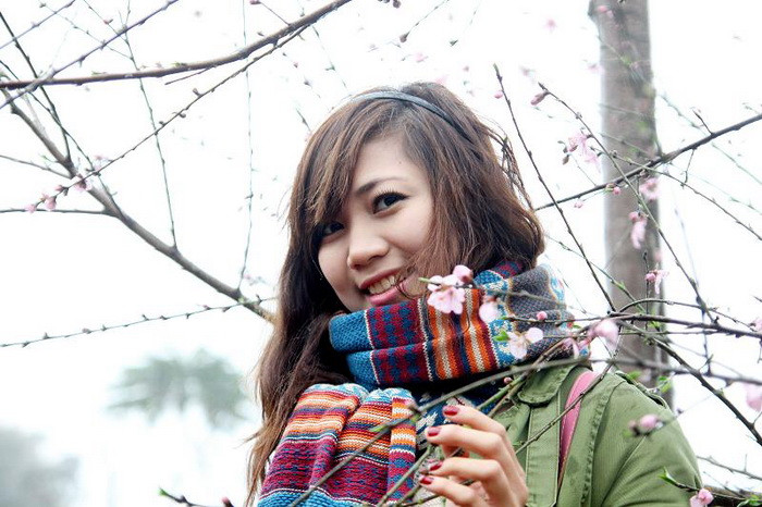 | Ngọc Trâm e ấp, duyên dáng bên sắc đào nở muộn. Chuyến đi Cao Bằng đã giúp tâm có nhiều trải nghiệm và thêm yêu đất nước. |