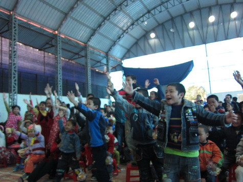 Những tiết mục đặc sắc của các bạn sinh viên kết hợp với các em đã khiến hội trường sôi động hơn