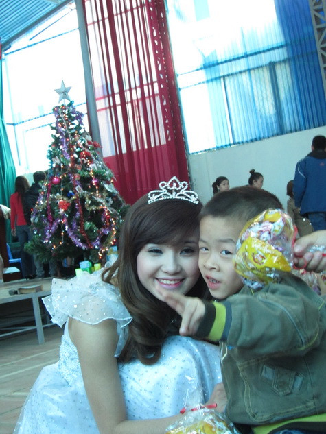 Đặc biệt là có sự xuất hiện của Khánh Chi, hoa khôi ĐH Văn hóa mở rộng 2011 hóa thân thành công chúa Tuyết nhí nhảnh, dễ thương tặng quà cho các bé khiến không khí gần gũi, thân mật hơn.