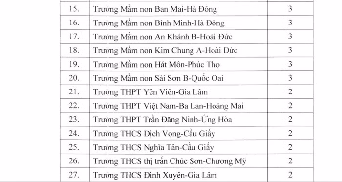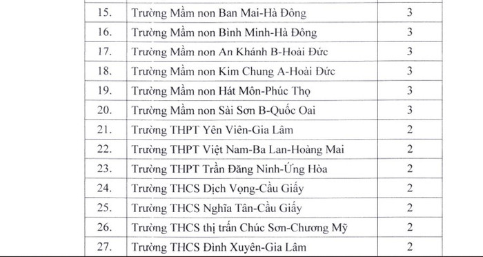 Công nhận 20 trường đạt cấp độ 3, trong đó có 07 trường mầm non, 05 trường tiểu học, 07 trường trung học cơ sở, 01 trường trung học phổ thông;