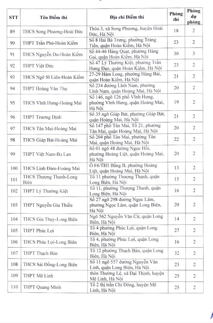 Sở Giáo dục và Đào tạo Hà Nội thông báo các địa điểm tổ chức kỳ thi tuyển sinh vào lớp 10 các trường trung học phổ thông công lập không chuyên năm học 2023-2024, tại Hà Nội.
