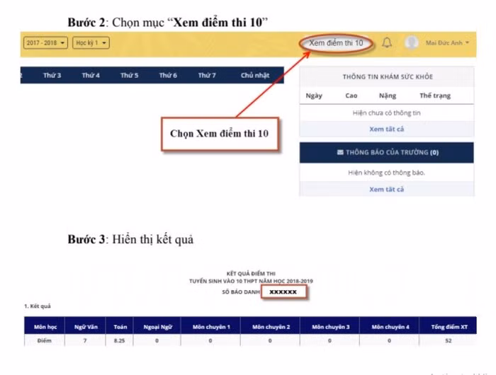 Nếu sử dụng sổ liên lạc điện tử, học sinh có thể tra cứu theo các bước sau: