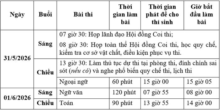 Kỳ thi vào lớp 10 trung học phổ thông năm học 2026-2027 của thành phố Hải Phòng đối với trường công lập không chuyên sẽ diễn ra trong 2 ngày 31-1/6/2026, cụ thể như sau: