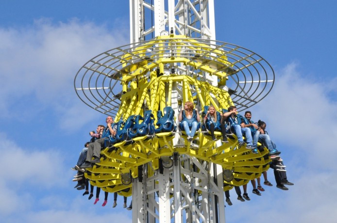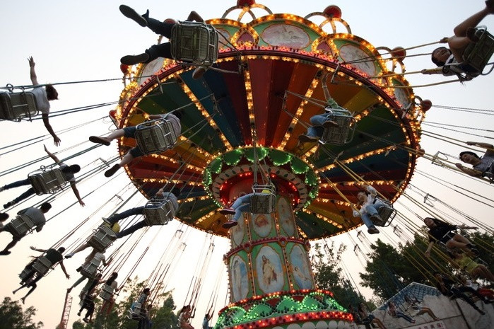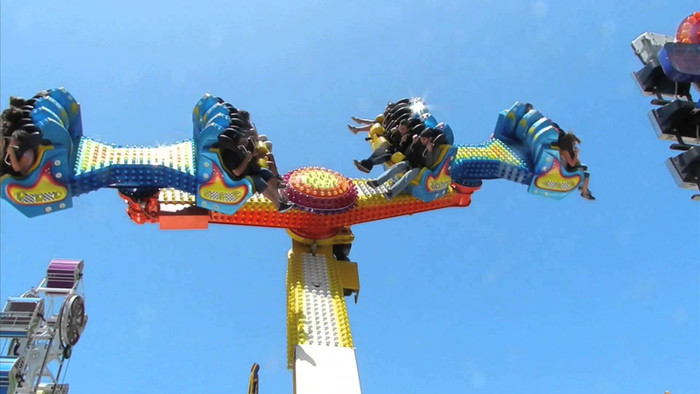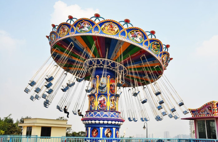 Nhưng sự phấn khích sẽ bắt đầu “leo thang” khi những chiếc ghế lơ lửng trên không trung càng ngày càng văng xa qua mỗi vòng quay.