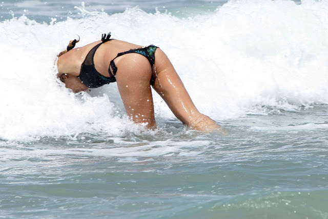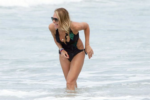 | Người đẹp Ilary Blasi vui đùa với những con sóng trong trang phục bikini một mảnh hở lưng gợi cảm |