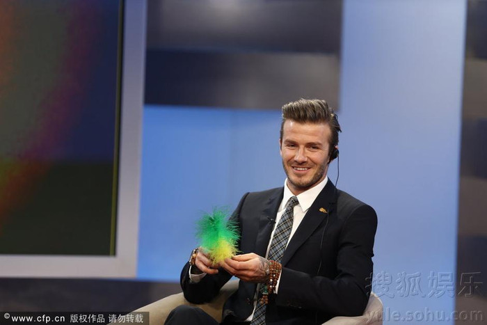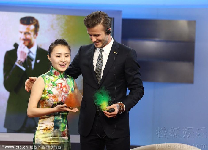 | Trong trang phục vest và giầy tây lịch lãm, Becks thể kỹ tăng tâng cầu trước người đẹp Trung Quốc. |
