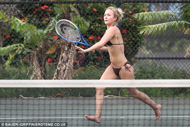 | Trong kỳ nghỉ trên hòn đảo Hawaii, nữ diễn viên xinh đẹp Hayden Panettiere đã nổi hứng chơi bóng rổ và tennis trong bộ áo tắm màu nâu vô cùng gợi cảm |