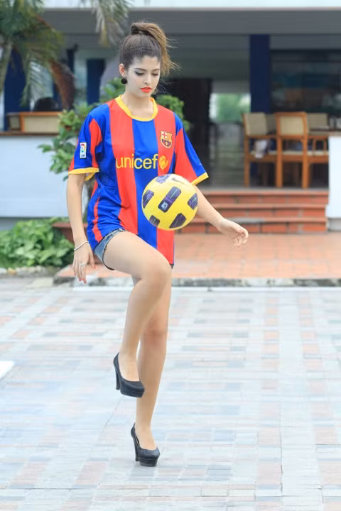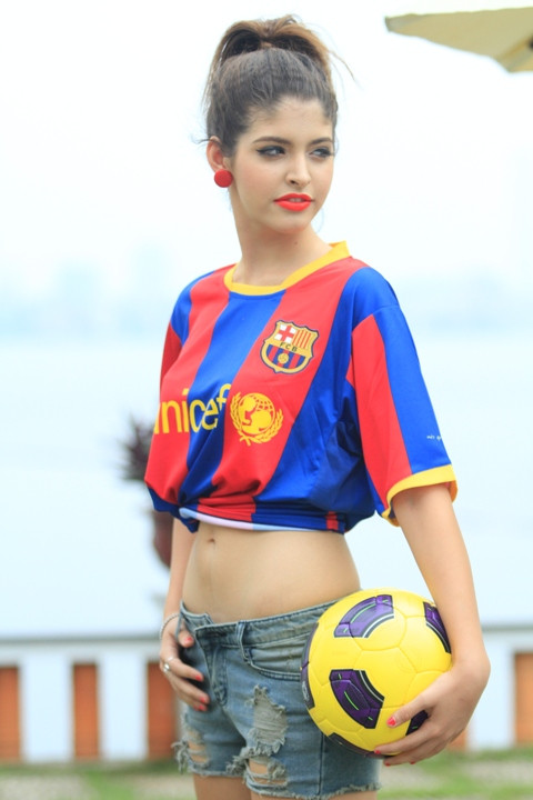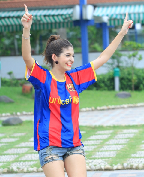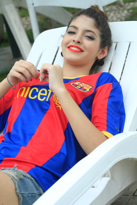 | Người mẫu tuổi teen Andrea Aybar cũng hâm mộ Barca nhiệt tình |