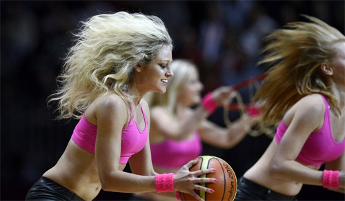 Dàn hoạt náo viên tóc vàng xinh tươi cổ vũ bóng rổ ở Olympic