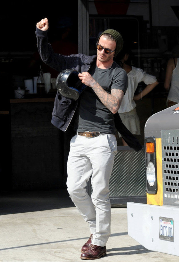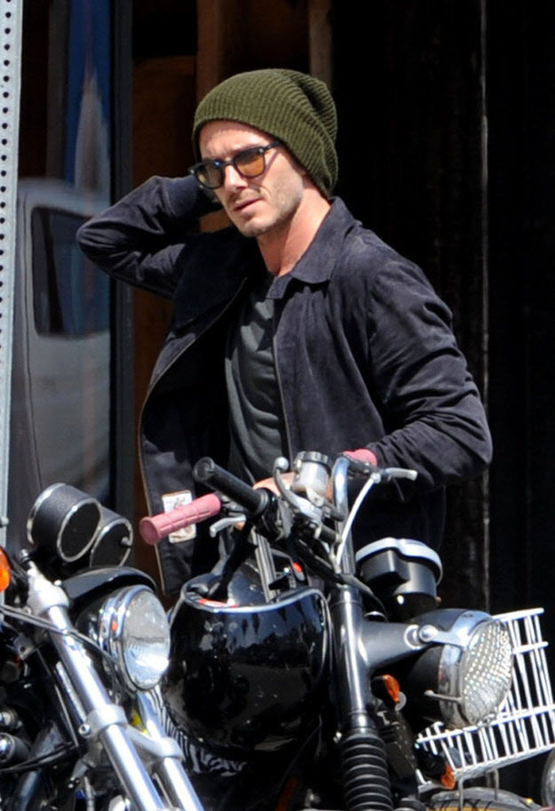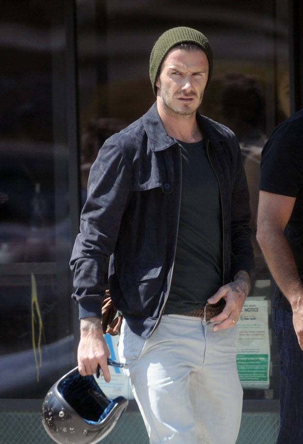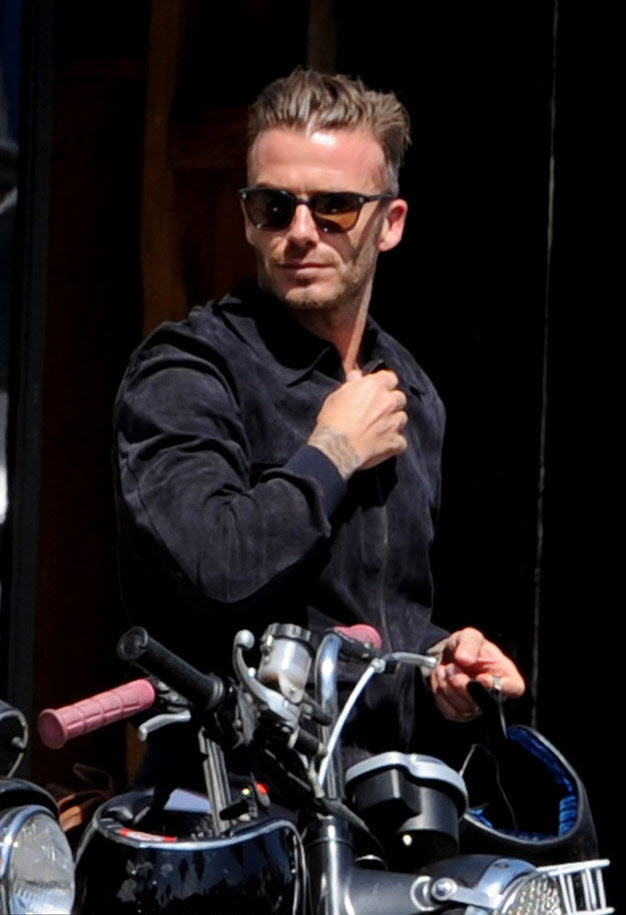 | David Beckham trông rất phong trần và nam tính với trang phục màu đen |