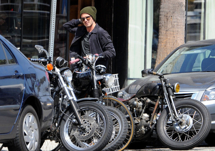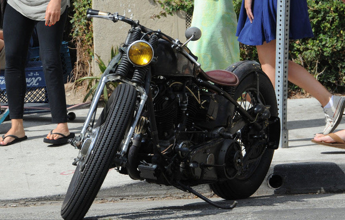 | Mặc dù sở hữu rất nhiều xe hơi sang trọng, nhưng ngôi sao người Anh vẫn rất thích lái chiếc Knucklehead 93 dạo phố |
