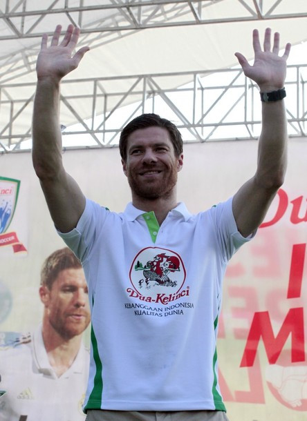 | Xabi và vợ đến trong vòng tay chào đón nhiệt thành của người dân Indonesia |