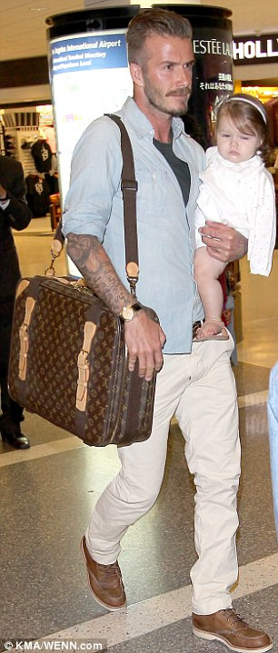 | Trong khi đó bé Harper lại ngáp ngắn ngáp dài suốt hành trình vào sân bay |