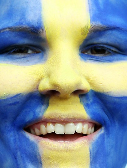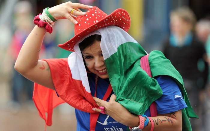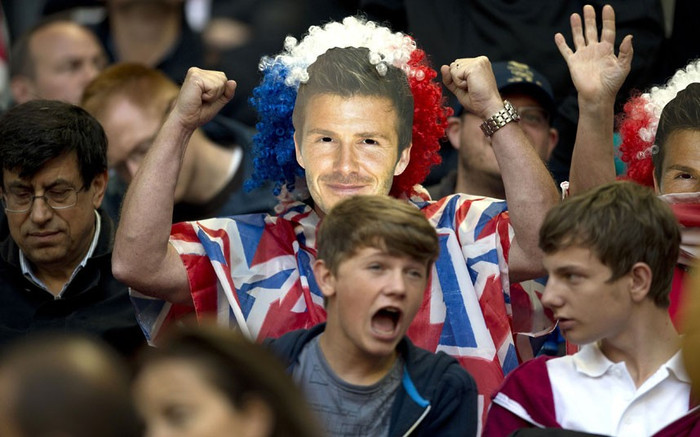 | Nữ CĐV của Vương quốc Anh trang điểm với cảm hứng từ lá cờ. |