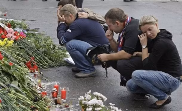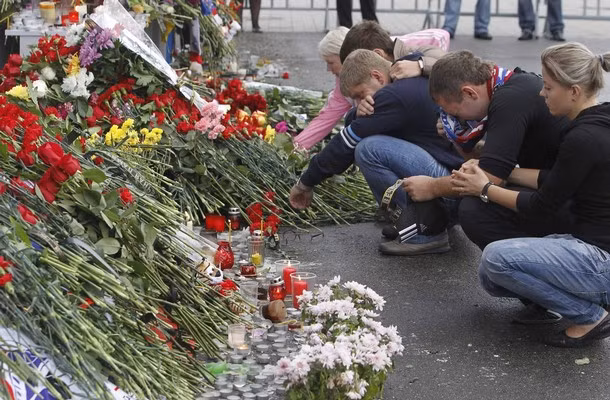 (GDVN) - Những bó hoa, những ngọn nến, những giọt nước mắt khóc cho các thành viên đội bóng gậy trên băng Lokomotiv Yaroslavl.