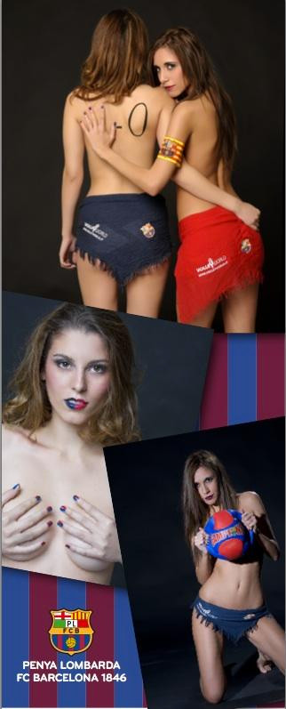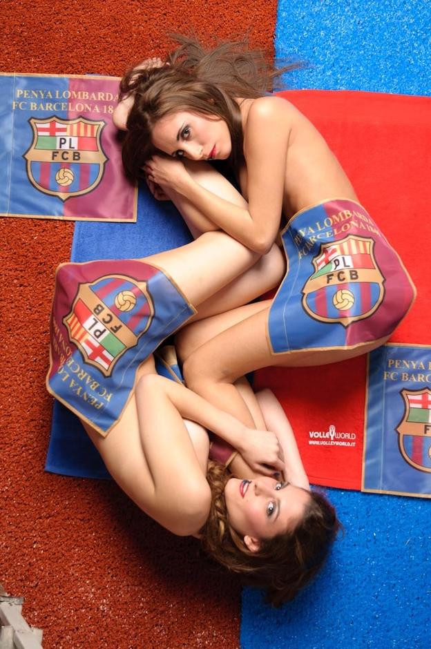 (GDVN) - Hai người đẹp khoe đường cong nóng bỏng và cuốn hút với logo, cờ, khăn của đội bóng xứ Catalan - Barcelona.