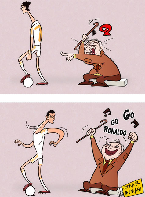 Vậy thì, rốt cuộc là Stefano nghĩ thế nào về Ronaldo? Hãy xem lời giải thích của họa sĩ biếm Omar Momani.