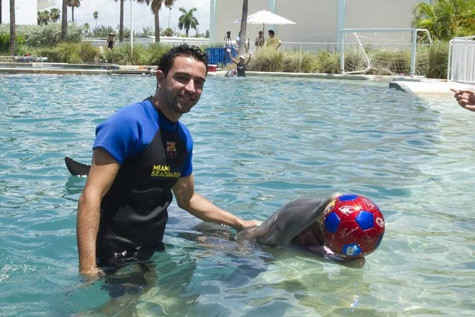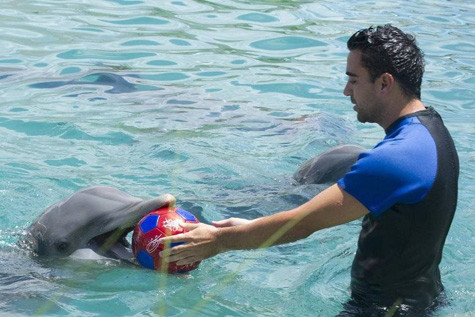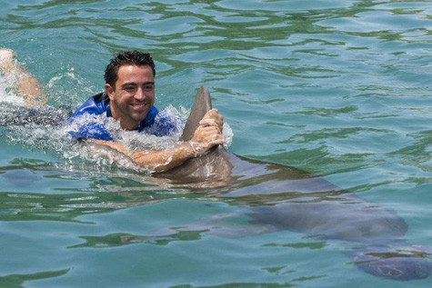 | Hồi mùa hè vừa qua, các ngôi sao Barca như Xavi, Villa, Pedro, Valdes… cũng đã có những trải nghiệm thú vị với bầy cá heo. |