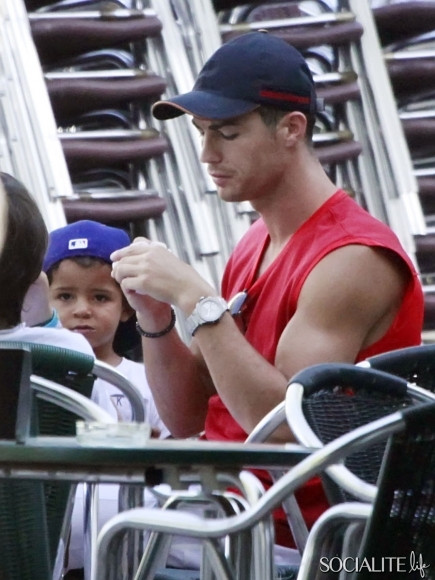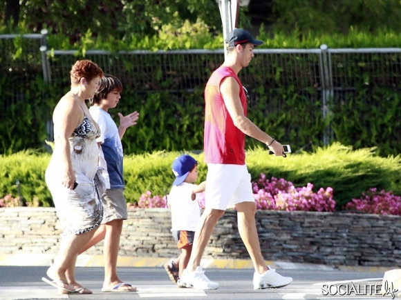 | Ronaldo trông rất thanh thản khi đi chơi cùng quý tử và gia đình. |