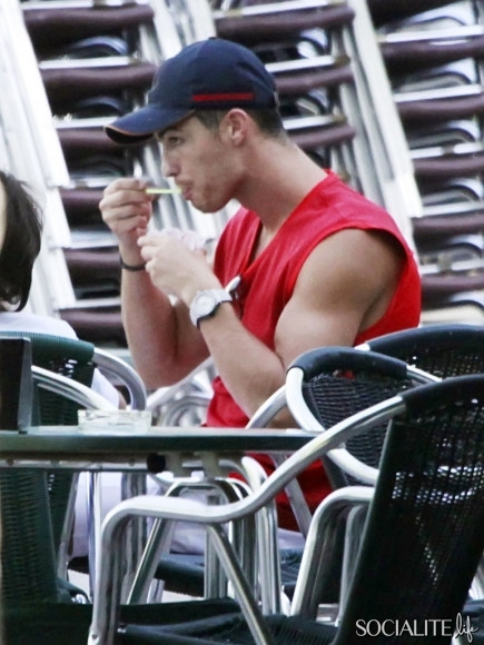 | Cristiano Ronaldo ngồi ăn kem ngon lành cùng cậu con trai ở Madrid, Tây Ban Nha. |