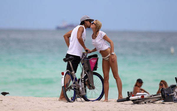 | Sami Khedira và bạn gái Lena Gercke chơi đùa với nhau |