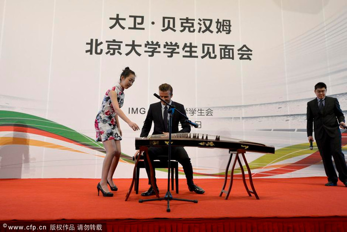 | Trong cuộc giao lưu này, Becks đã được đề nghị thử chơi một loại đàn dân tộc của Trung Quốc. |