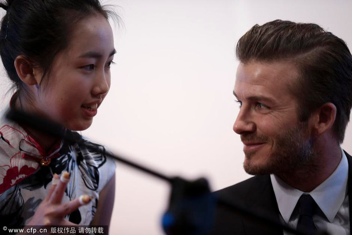 | Sau khi được một cô gái người Trung hướng dẫn, ngôi sao người Anh tỏ ra rất hứng thú. |