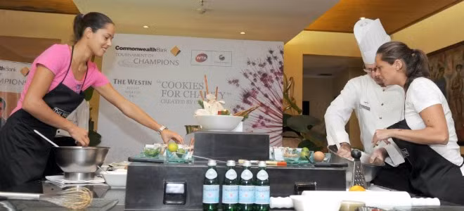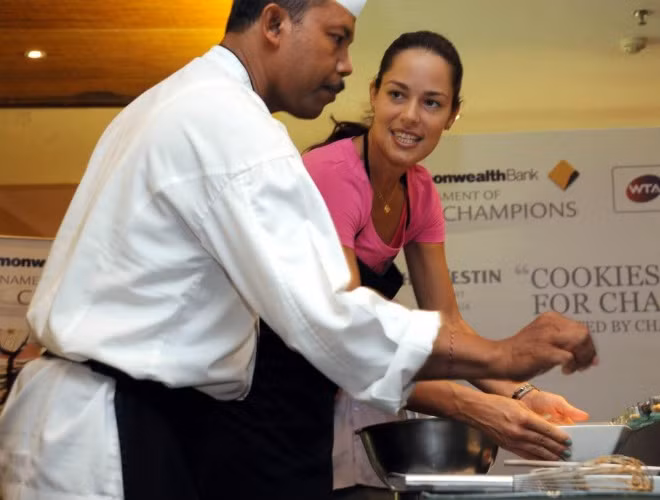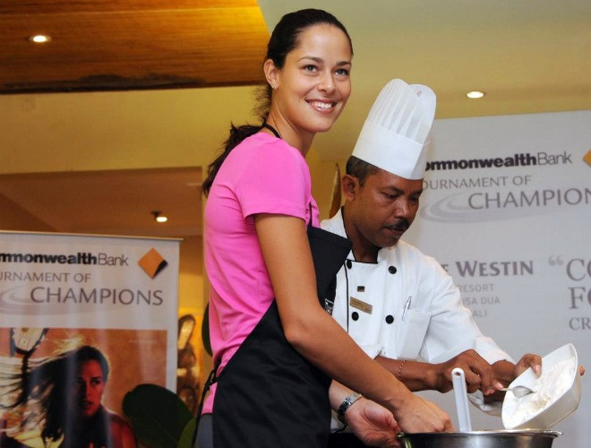 | Ana Ivanovic trổ tài nấu nướng khi tham dự giải quần vợt ở Bali (Indonesia). |