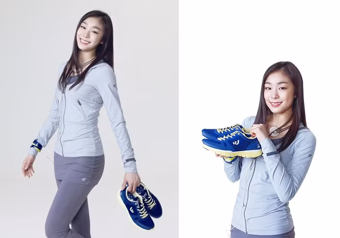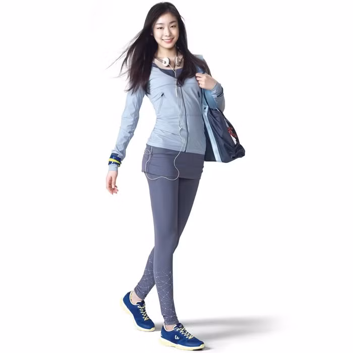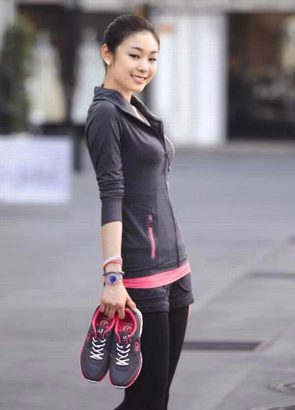 | Kim Yuna đầy trẻ trung và xinh tươi trong trang phục thể thao và xách trên tay đôi giày thể thao Prospecs |