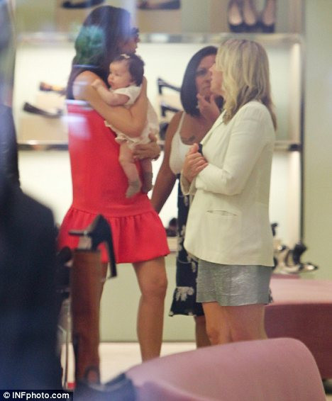 | Bế cô con gái bé bỏng nhưng Vic vẫn đi giày cao gót rất tự tin. |