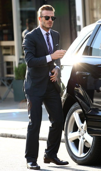 | Trong khi, David Beckham lịch lãm và sang trong với vest màu đen |