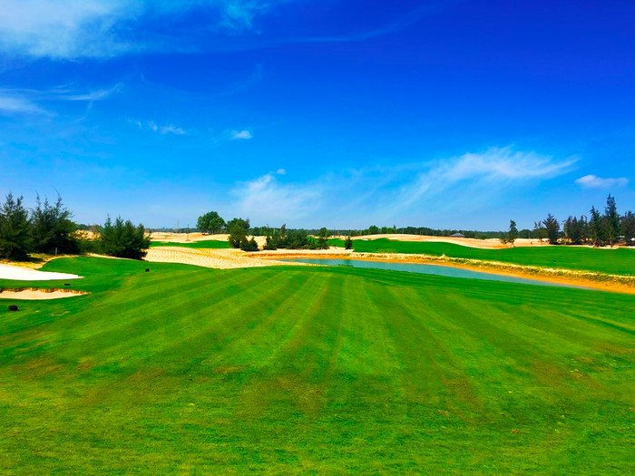 Từ VinEco, màu xanh sẽ nối tiếp ra sân golf Vinpearl Golf 18 hố đầy thử thách với bẫy cát đặc biệt lớn và các hồ nước được bố trí xen kẽ trong khung cảnh thiên nhiên tuyệt đẹp.