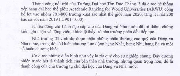 Đây là động thái cần thiết để tuyên dương và khích lệ tinh thần của tập thể Ban lãnh đạo, giảng viên và viên chức của Trường, trong bối cảnh Trường vừa vinh dự lọt vào top 701-800 đại học hàng đầu thế giới theo bảng xếp hạng ARWU, tăng ít nhất 200 bậc so với năm 2019 (vị thứ 901 – 1000).