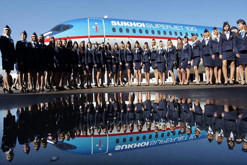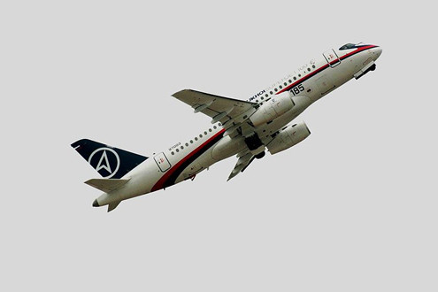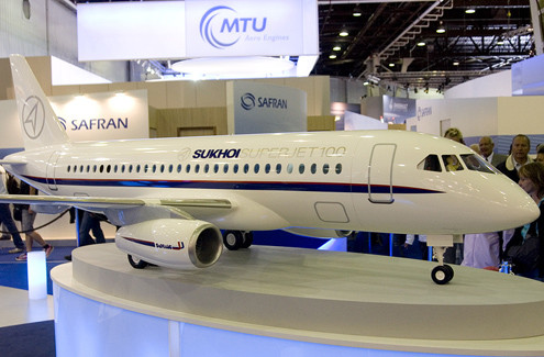 | Chiếc Sukhoi Superjet 100 trong một lần được Công ty hàng không dân dụng Sukhoi giới thiệu với khách hàng. |