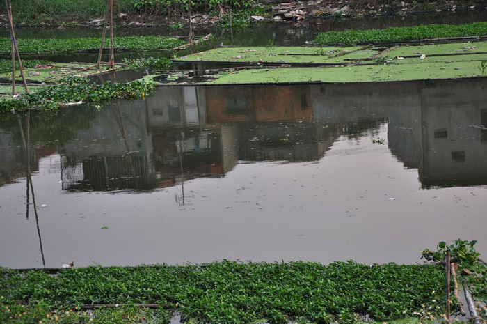 | Những ngọn rau muống non mơn mởn trên dòng nước ô nhiễm ở đây không cần phải chăm bón bao giờ. |